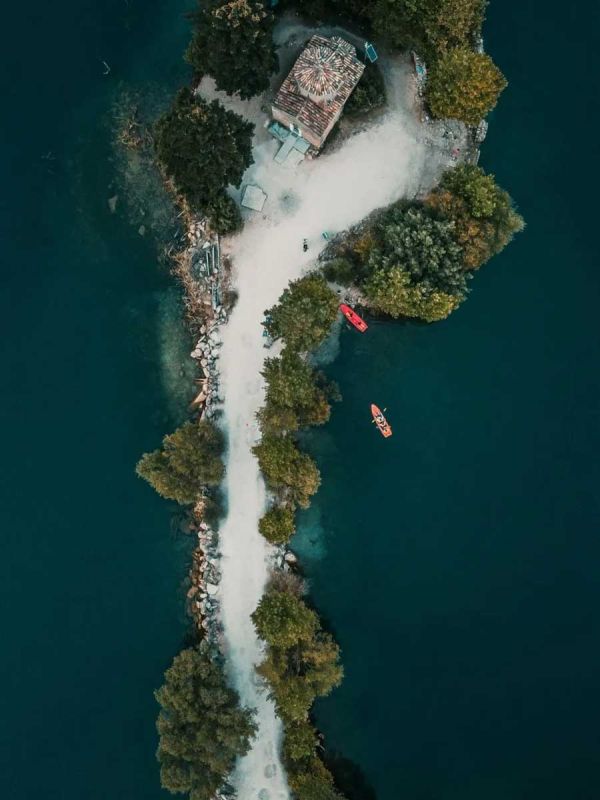 About 25 km (15.5 miles) west of Lake Stymphalia, in the municipality of Feneos and at an altitude of 900 m (2953 ft.), you will find a small and beautiful artificial body of water: Lake Doxa. Its construction was completed in the late 1990s. At the center of the lake is the chapel of Agios Fanourios, a saint whose feast day is celebrated on August 27th. The incomparably beautiful natural landscape around Lake Doxa resembles Alpine landscapes, with tall mountains and sparkling lakes. More specifically, three remarkably high mountain peaks dominate the sky: Kyllini (or Ziria) with an altitude of 2374 m (7789 ft.), the Aroania mountains (Chelmos) with an altitude of 2355 m (7726 ft.) and the Pentelia mountains (or Durduvana, a Slavic place name meaning rosebush) at an altitude of 2109 m (6619 ft.).