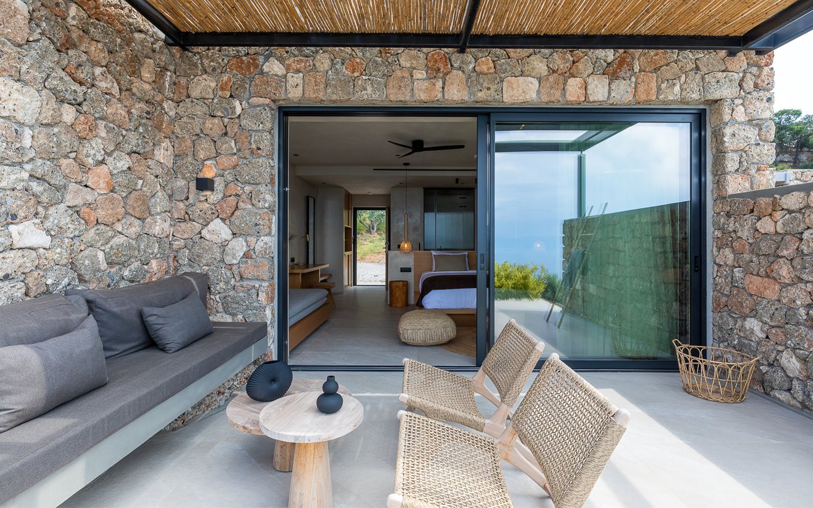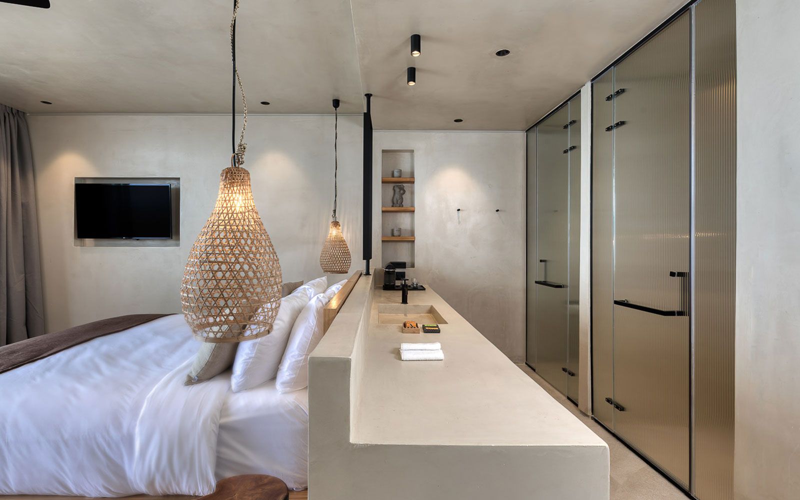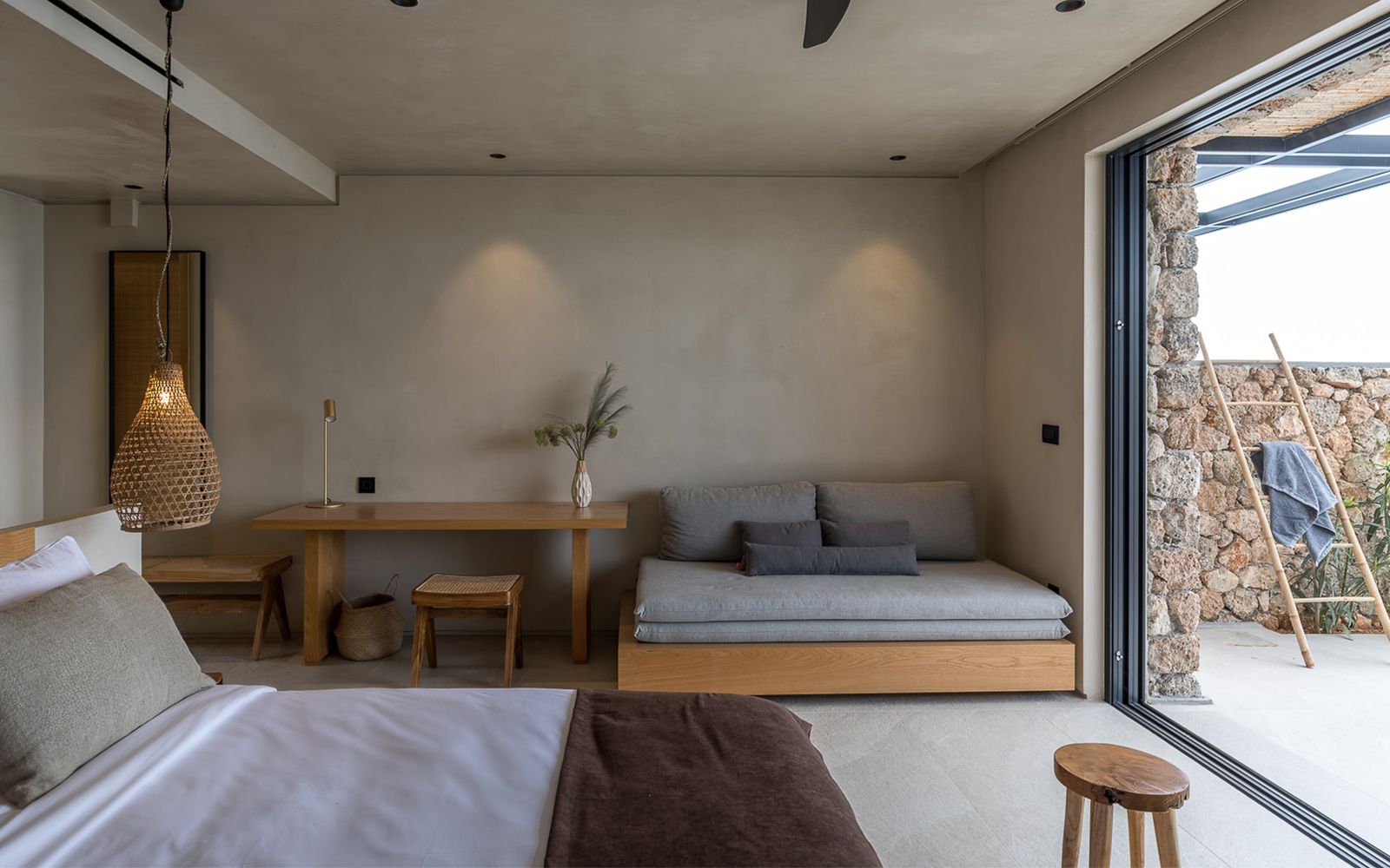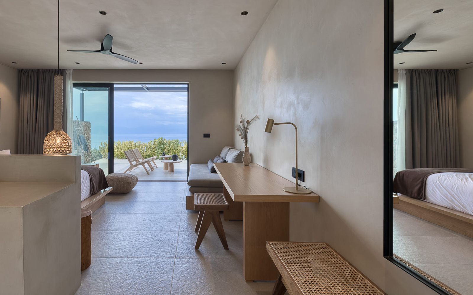 Our Junior Suites are modernly decorated, with supreme aesthetics that feature an open plan bedroom with a living room. Comfortable and carefully chosen pieces of wooden furnishings and earthy chromatic touches in the décor create an aura of refined elegance. The suites come with a luxurious en-suite bathroom with rain shower. The luminous private verandas provide a spot to enjoy the refreshing breeze while overlooking the wonderful panoramic sea view.